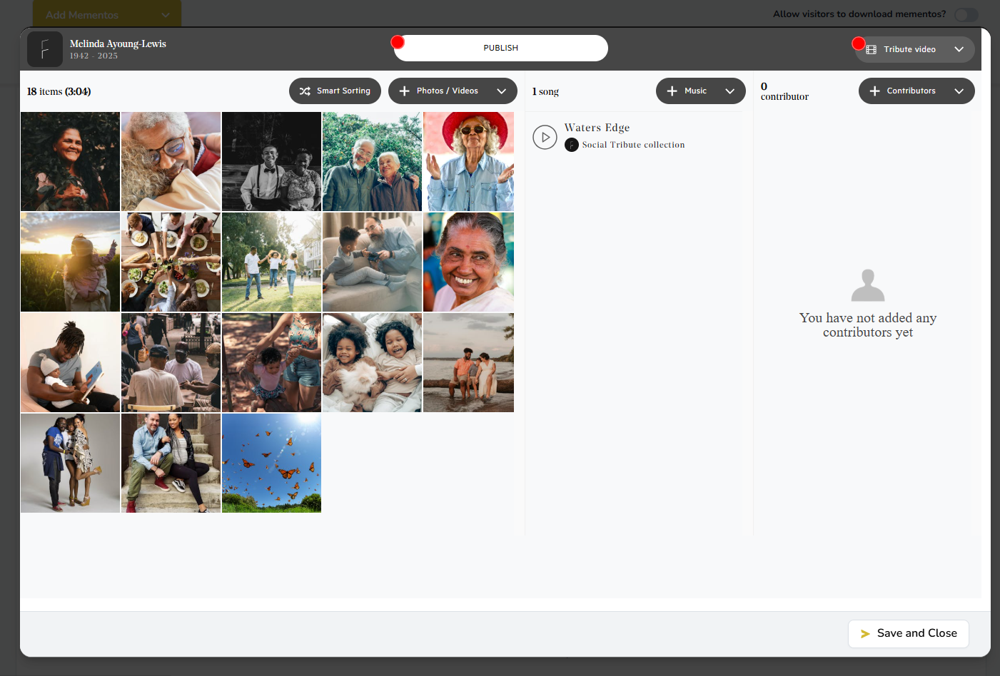 There are a few ways to start creating a Tribute Video, depending on what’s already been added to the Mementos tab.