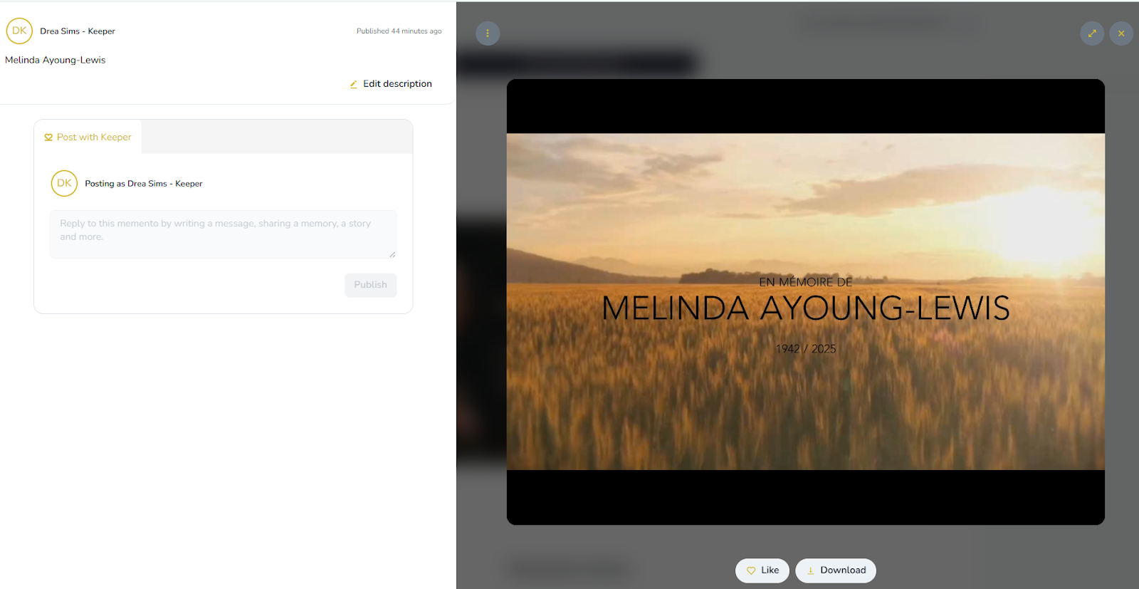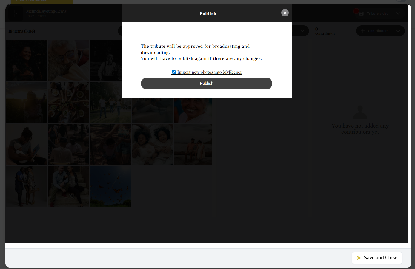 - A modal opens within Keeper explaining the Tribute Video and what’s included: